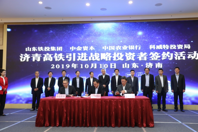 10月10日,济青高铁引进战略投资者签约活动在山东大厦举行,山东省凌文副省长,发改委、国资委、交通厅、76net必赢官网等主要负责人,中金资本、科威特投资局、农银投资等机构投资者主要负责人出席会议。济青高铁作为国家铁路投融资体制改革后第一条以地方为主投资建设的高速铁路,本次引战的成功是我省落实中央和山东省政府部署、探索中国高速铁路项目投融资新模式、推动“双招双引”的重要举措,标志着我省在加快推进基础设施建设投融资改革方面又一次走在了全国前列。