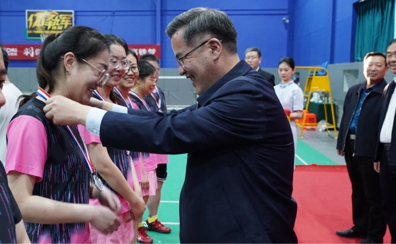高燕在闭幕式上讲话,向取得优异成绩的代表队表示祝贺,向所有运动员的奋勇拼搏、裁判员的公正评判、大赛组委会的精心组织、筹备组工作人员的默默奉献表示赞扬和慰问。她强调,本届羽毛球比赛是今年集团举办的第一场大型群众性文体活动,各代表队在比赛期间充分发扬“顽强拼搏、团结协作”的运动精神,赛出了水平,更赛出了风格,充分展示了铁投人朝气蓬勃、昂扬向上的精神风貌。希望大家在今后的工作和生活中,继续发扬拼搏精神,以饱满的热情、昂扬的斗志,为集团高质量发展努力奋斗!随后,高燕、窦玉硕等领导向各代表队颁发了奖牌和奖杯,并与大家合影留念。