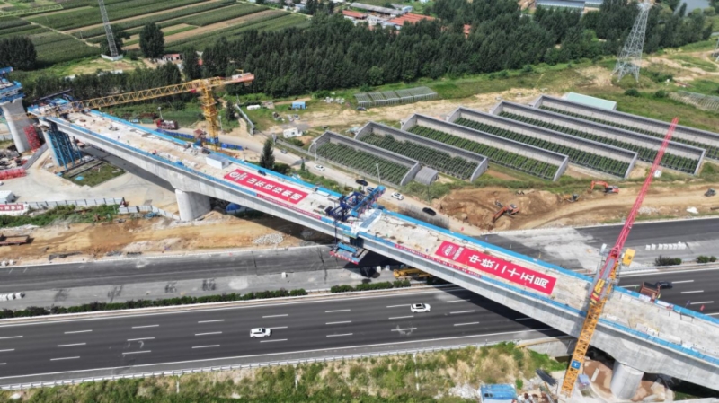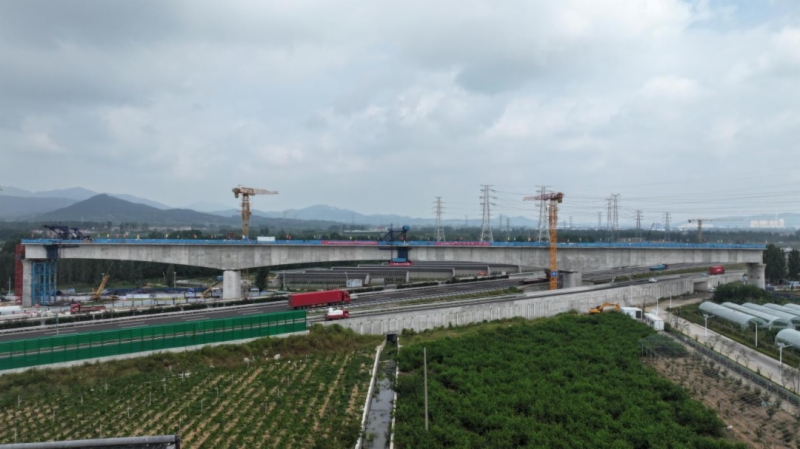 9月14日,全长272米、总重超1.7万吨的潍宿高铁至青岛连接线(以下简称青岛连接线)西风河特大桥跨沈海高速连续梁顺利合龙,这是青岛连接线全线最大跨度连续梁。