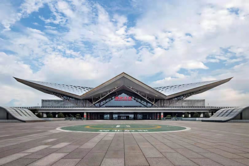 潍坊是中国风筝文化重要的传承地,自古有“鸢都”的美誉。潍坊北站站房造型从传统的盘鹰风筝汲取灵感,主立面以简洁有力的折线勾勒出雄鹰展翅欲飞的动势,支撑大屋面的结构构建稳定而纤细,寓意风筝的丝线,充分彰显地域特色。