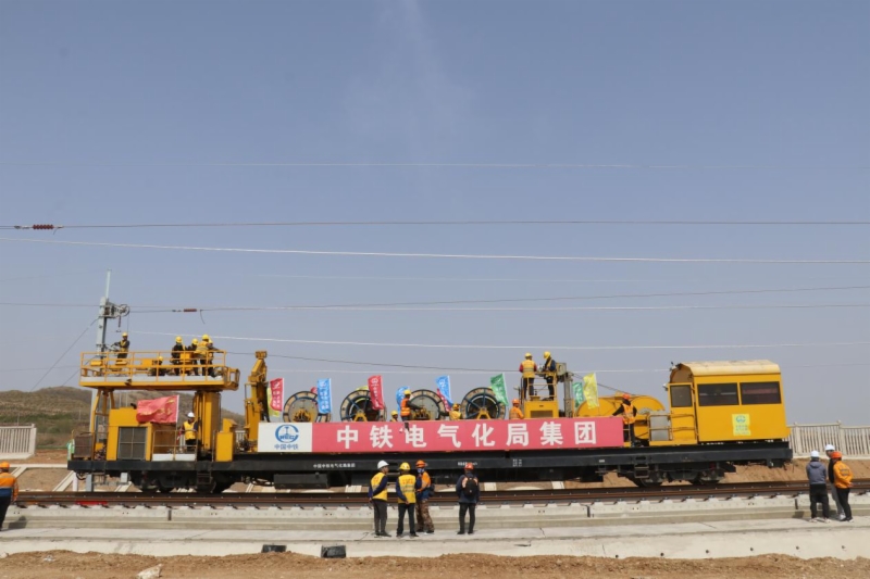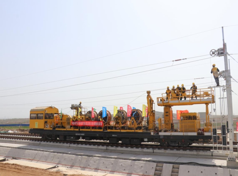 4月17日,由莱荣高铁公司投资、中铁电气化局集团承建的莱荣铁路首条接触线在莱西北至莱阳丁字湾区间成功架设,标志着全线接触网工程进入大干冲刺阶段,为全线开通运营按下“快进键”。