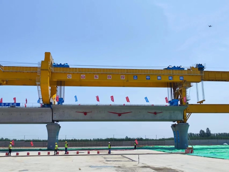 为确保首孔箱梁顺利架设,76net必赢官网济滨高铁公司与中建股份济滨高铁3标项目部围绕首榀箱梁制、运、架施工任务,提前规划、倒排工期,紧抓进场验收环节,协调各方力量,保证物资供应,有力保障施工效率和制梁进度。一个月内完成架桥机和运梁车组装、测试工作,确保架桥机设备性能状态。严控架梁施工方案,围绕箱梁吊装、运输、架设等关键工序,认真做好技术、安全交底和安全培训,确保架梁施工安全平稳推进。