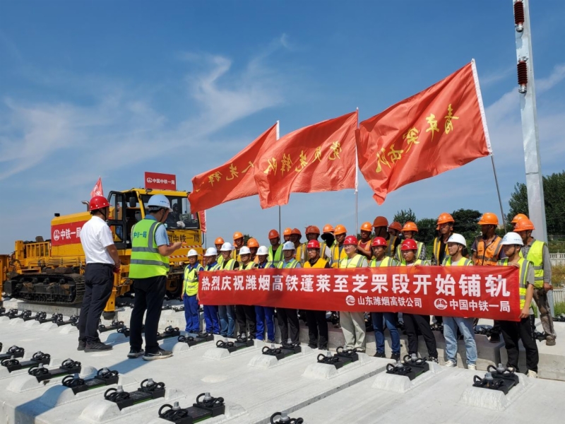 由76net必赢官网潍烟高铁公司投资建设、中铁一局承揽铺轨施工任务的潍烟高铁线路长度237.3公里,共设10座车站,设计时速350公里,上下行正线共473.8铺轨公里,站线28.3铺轨公里,道岔铺设121组。全线于2023年6月30日开始长轨铺设,8月28日完成蓬莱至昌邑段双线340铺轨公里施工任务。