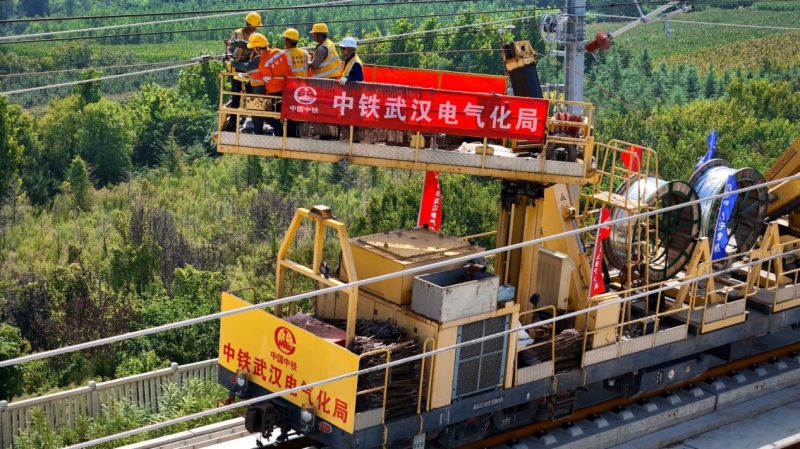 接触导线直接承担着为列车提供强大电力来源的重任,列车通过受电弓从接触网上直接取电,获得行驶动力。潍烟高铁需架设接触网629.46条公里,在导线架设中,统一采用恒张力放线车施工,确保导线的平直误差不超过0.1毫米。