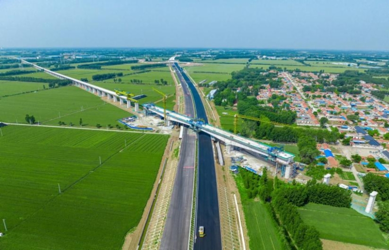 近日,济滨高铁济商1号特大桥跨新建绕城北高速(72+120+72)米连续梁合龙,为下一步桥梁架设和无砟轨道铺设奠定坚实基础。