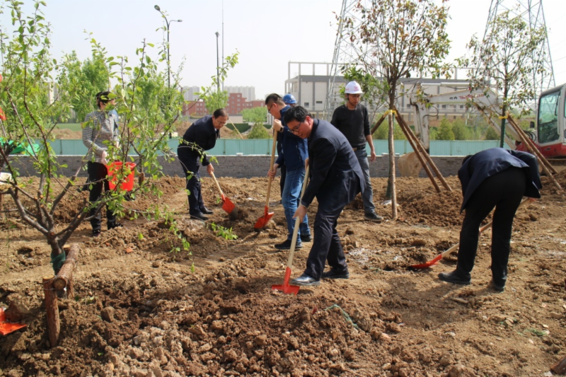 活动中,大家干劲十足,挥锹铲土、挖坑放苗、培土浇水等各个环节都精心对待,经过1个多小时的辛勤劳动,紫叶李、榆叶梅、石楠、海棠等60余颗树苗在济青高铁档案馆绿化区“安家落户”,为驻地建设增添了一抹新绿。